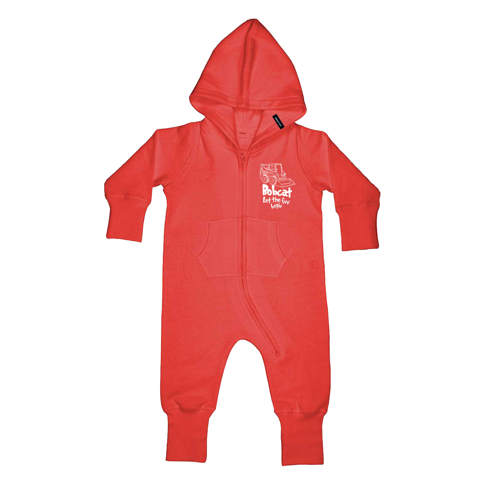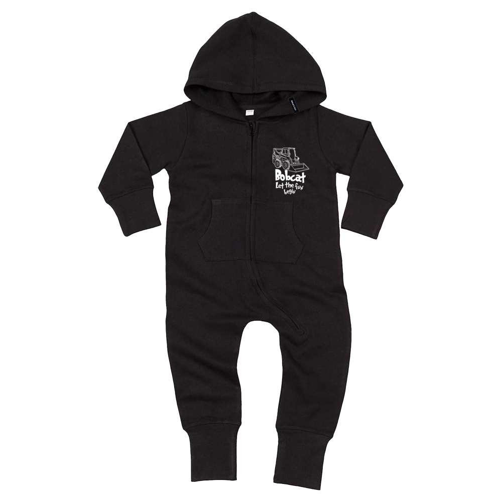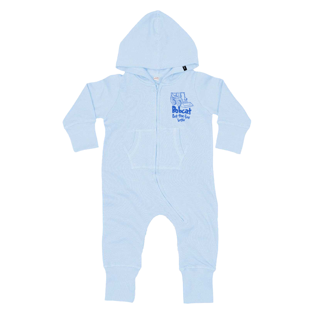Baby All-in-One with brushed inner and extra-long cuffs on sleeves and legs which can be folded for improved fit. Flat comfort seams and seam-free back for optimum decoration potential. 3-piece single layer hood. Kangaroo pocket. Zip front with comfortable tab, 80% cotton, 20% polyester. Customised with kids design print and original woven label.