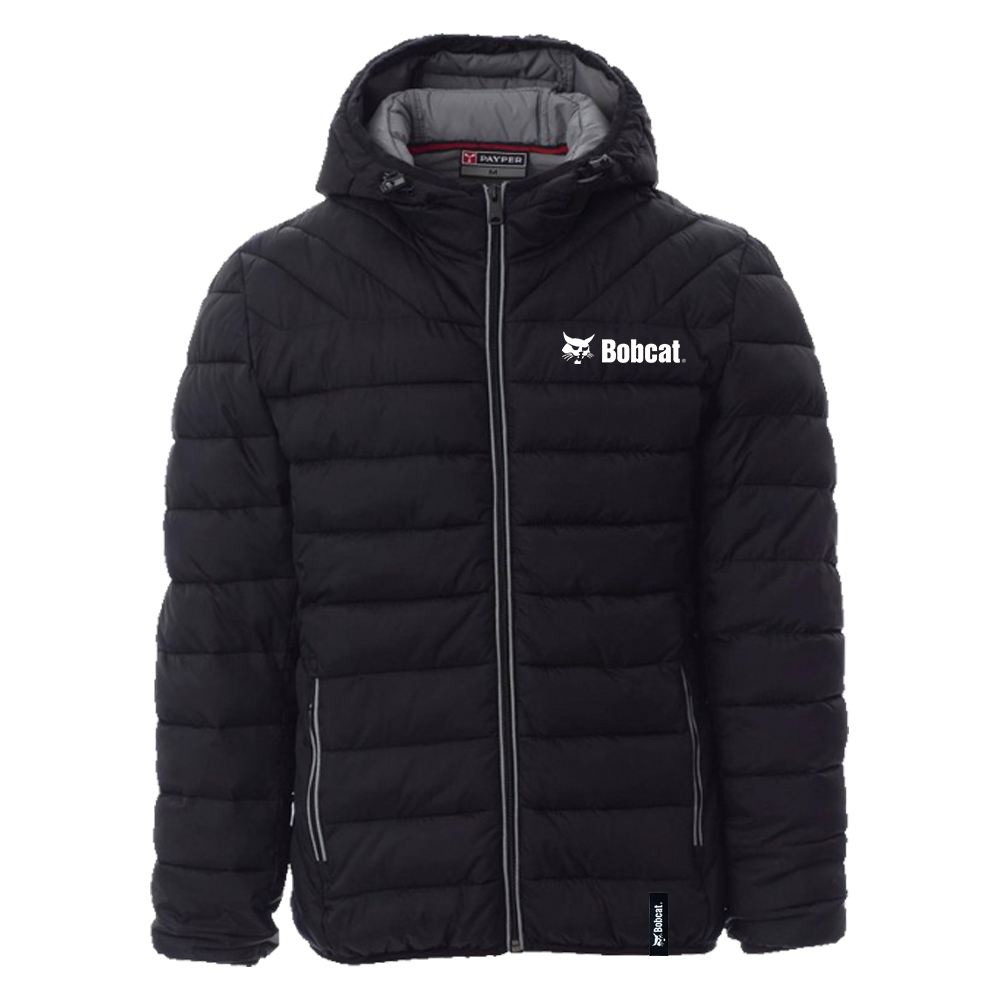 Unisex hooded lightweight down jacket, 5 mm plastic zip with metal pull, thin-edge cuffs and hem, two outer pockets. Lining: feather-effect polyester padding, two pockets. 100% Nylon. Customised with full logo print and original woven label.