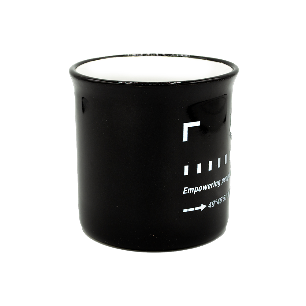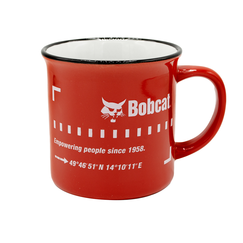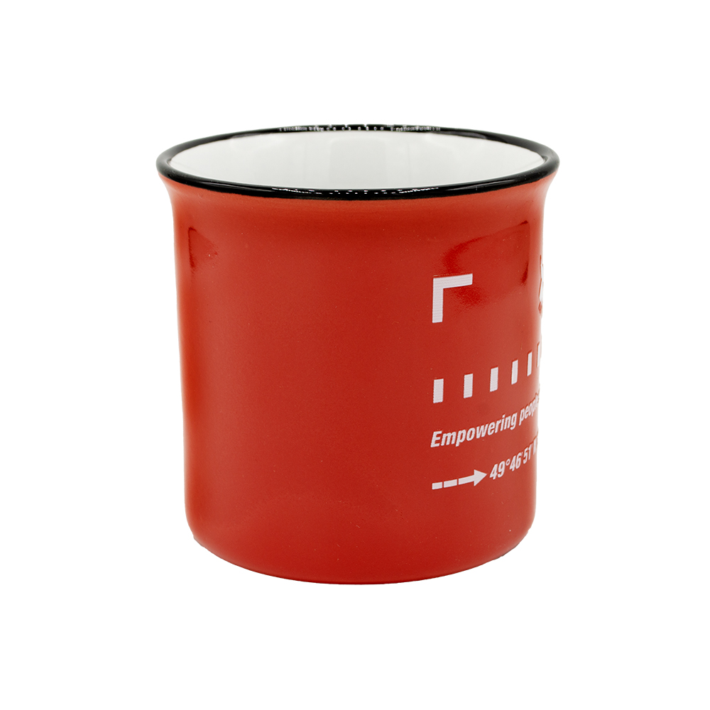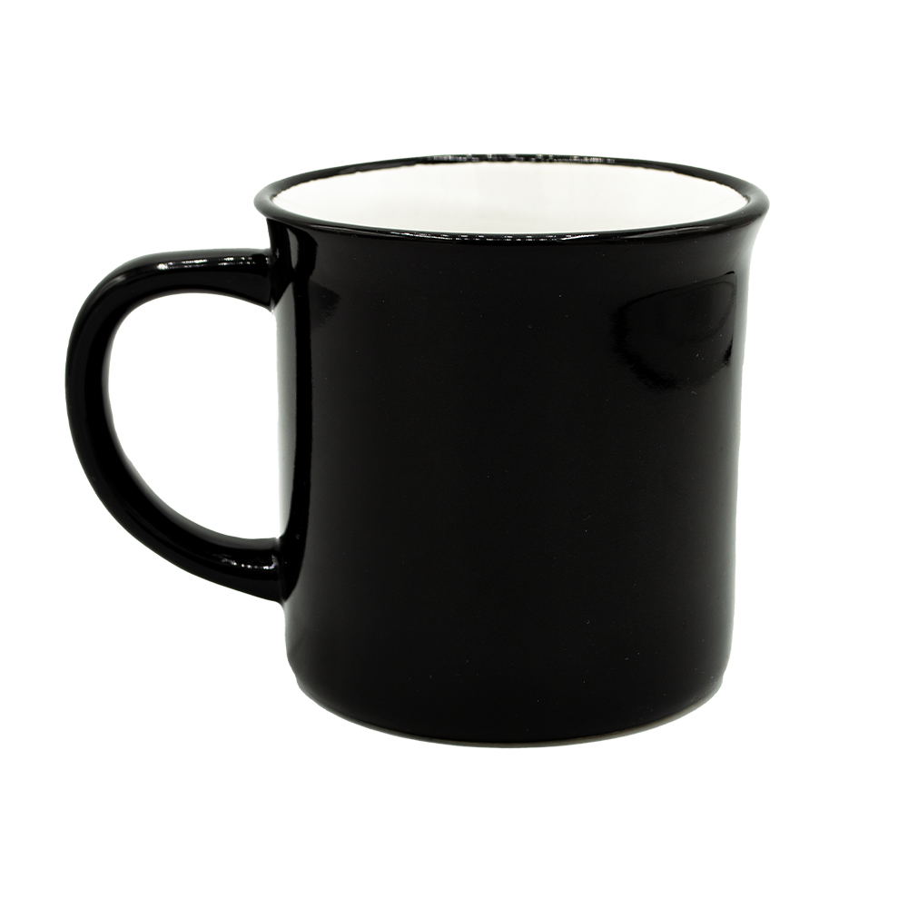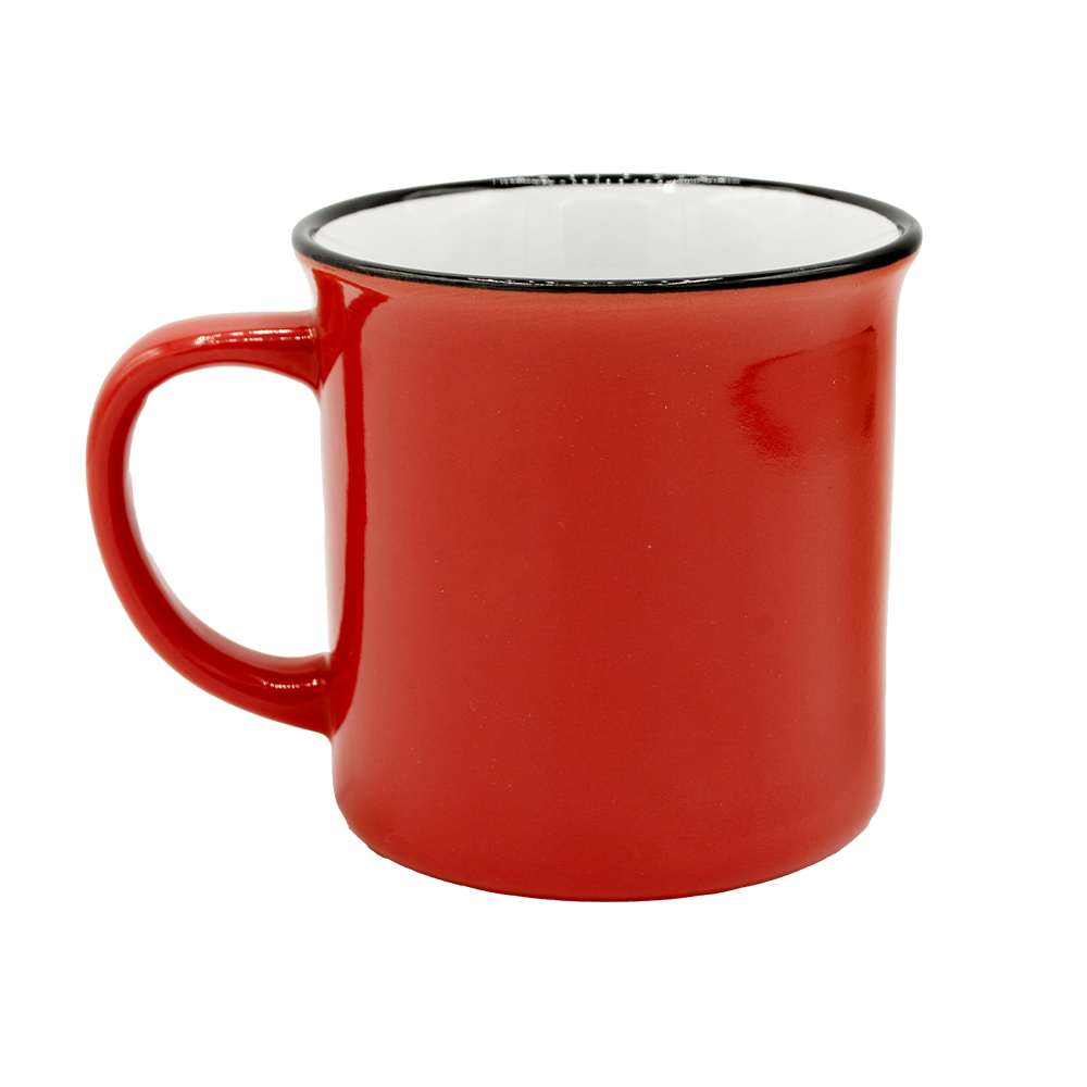 Ceramic mug with vintage design. White interior with a border in different colors, 300ml. Customised with direct UV print.
