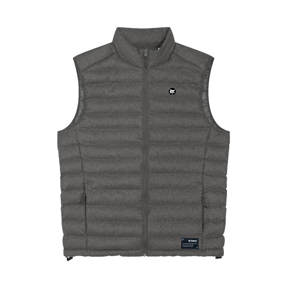 The female wool-like padded vest, plain weave brushed, 100% polyester – recycled, fluorine free DWR, 140 G/M, set-in sleeve, high collar with detachable hood with matte metal hidden snaps, hood opening and bottom hem with adjustable plastic stopper and elastic cord, reverse nylon zip at center front, zipped welt pockets with extra grosgrain puller, fully quilted, side panels for better shape, inside seams with binding finish. Customised with high definition patch and original woven label.