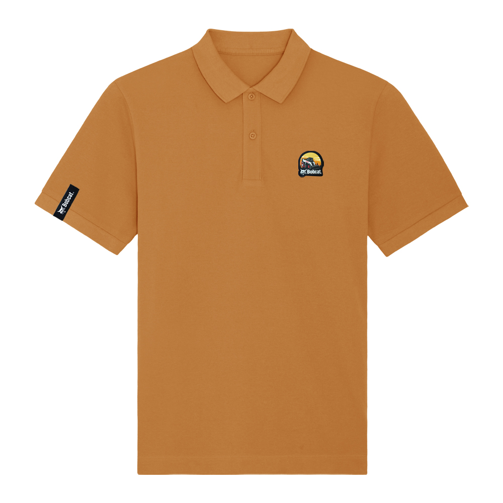 Male pique polo, organic certified, set-in sleeve, flat knit rib on collar and sleeve hem, inside heavy single jersey back neck tape, front placket with 2 buttons in matching body colour, 100% cotton pique. Customised with high definition patch and original woven label.